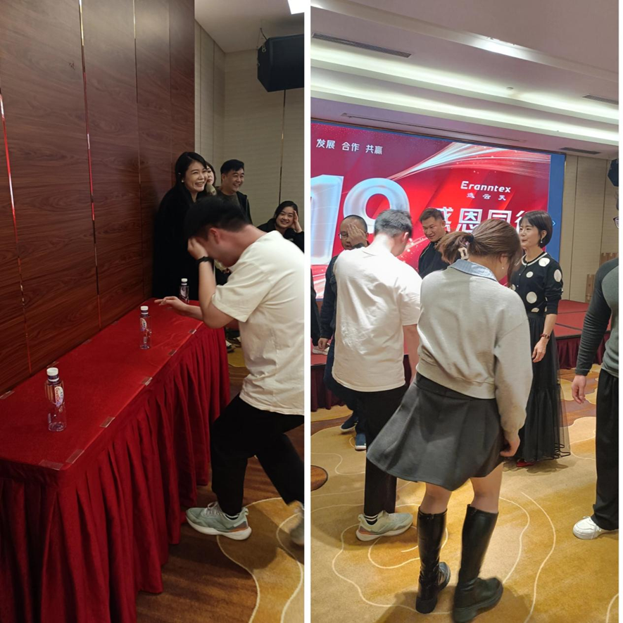 年會現(xiàn)場,趣味橫生的游戲環(huán)節(jié)成為了一大亮點。首當(dāng)其沖的是“錯誤乘法表”游戲。14位參賽者排隊站好,主持人隨機出九九乘法表題目,答題者必須給出十位數(shù)正確、個位數(shù)錯誤的答案。這一新穎的規(guī)則讓現(xiàn)場笑聲不斷,參賽者們機智應(yīng)對,展現(xiàn)了逸云天人的聰明才智和團隊協(xié)作能力。